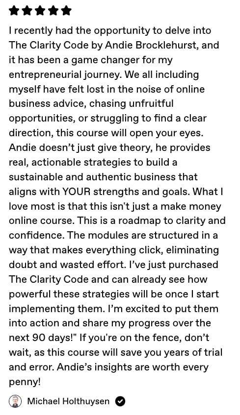 Unlike the endless stream of "get rich quick" schemes and one-size-fits-all systems, The Clarity Code is designed to meet you where you are.